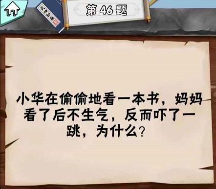 “小华在偷偷地看一本书妈妈看了后不生气反而吓了一跳为什么?”是脑筋急转弯达人LV1第46关问题,很多玩家还不知道答案是什么,接下来小编为你带来脑筋急转弯达人LV1第46关答案。