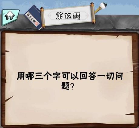 “用哪三个字可以回答一切问题?”是脑筋急转弯达人LV1第12关问题,很多玩家还不知道答案是什么,接下来小编为你带来脑筋急转弯达人LV1第12关答案。