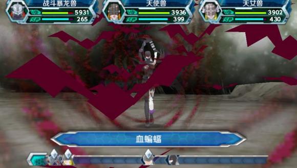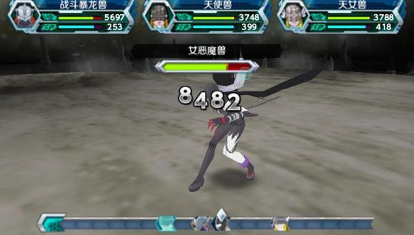 除了没夺命狂呼以外,其它方面的实力都比吸血魔兽强!)女恶魔兽的招式有:血蝙蝠,妖女魔剑,恐怖地带。血蝙蝠和吸血魔兽的夜魔飞袭类似,群体攻击,并将攻击所得到的伤害回复自身。妖女魔剑是单体高伤,有可能会miss但是也很容易暴击。恐怖地带则和分子兽的“反转陷阱”一样,使用后在其下一回合之前,如果我方攻击她,她将会自动强力反击(伤害不轻),但是我方还可以进行二次反击。因为女恶魔兽的高速度,所以如果我们SPD芯片装备较少且等级较低的话,很可能被敌方先手。同时,女恶魔兽也是黑暗系数码宝贝,神圣系数码宝贝对其有4倍的伤害加成。所以这场战斗中,战斗暴龙兽的输出远不及天女兽,盖亚能量炮的伤害还不及天使兽的天堂之拳,所以这场战斗只能委屈一下战斗暴龙兽了!