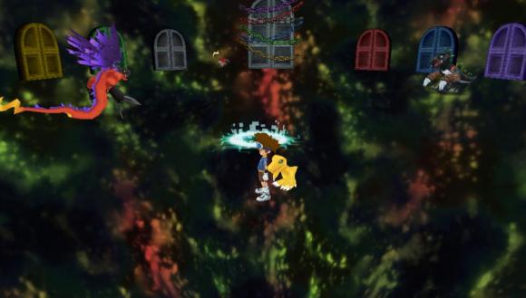 另外,中间大门上拴着有6条锁链。当我们干掉了一扇门中的数码宝贝时,中间大门对应的一条锁链将会断裂。当6条锁链全部断裂之后,中间大门将会解锁。打开中间大门前进,我们将会迎来最后一场对决启示录兽的战斗!