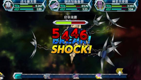 无赖打法中,LZ把钢铁加鲁鲁换成了花仙兽,花仙兽其实也是个完全体中的BUG辅助兽!虽然花仙兽的花之项链伤害很低,但是不要忘了那招的SHOCK+BREAK几率和神天的BUG门完全相同哦,SHOCK+BREAK启示录兽的概率也是100%!而且花仙兽的诱惑还可以削减攻防,也有一定SHOCK+BREAK几率!另外,LZ忘了说其实战斗龙卷风也有一定几率可以BREAK掉对方。而且,我们现在全员的羁绊等级已经达到最高,所以羁绊连锁的概率也高的丧心病狂!
