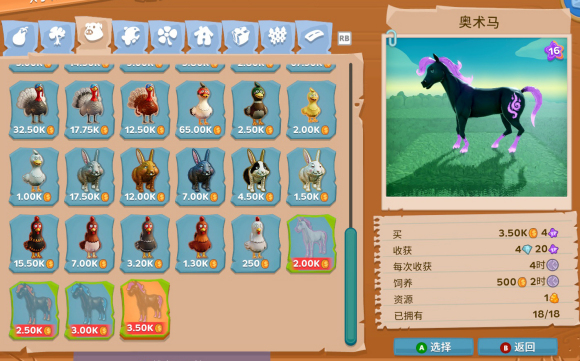 3)奥数马(活动物品):1匹收获1个,开双倍是2个,这个马最多能养18匹。