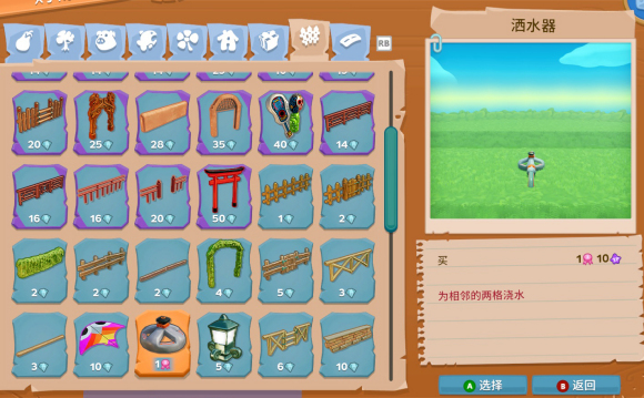 这个是什么等级解锁忘记了,1个洒水器花费1个勋章,效果是给2个格子自动浇水