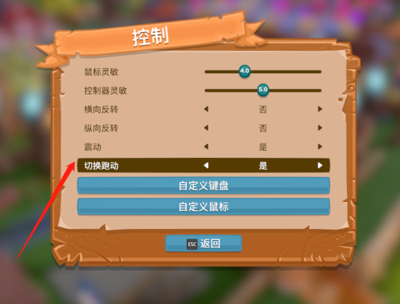 然后返回,从此以后shift就变成按一下切换走和跑的状态,就不用一直按着shift跑了,解放小拇指!