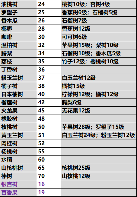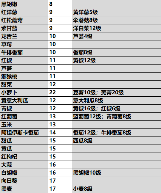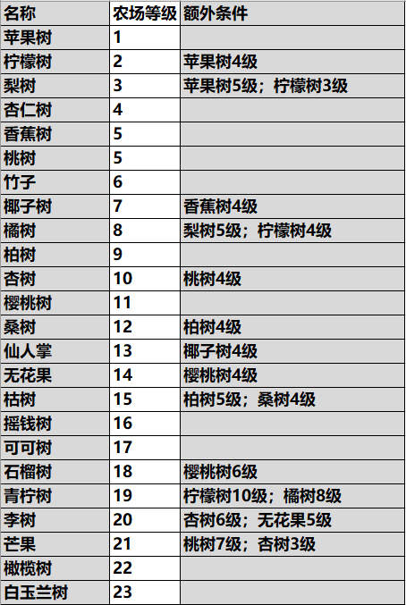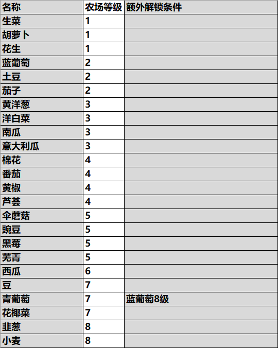 【作物解锁条件表】