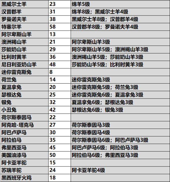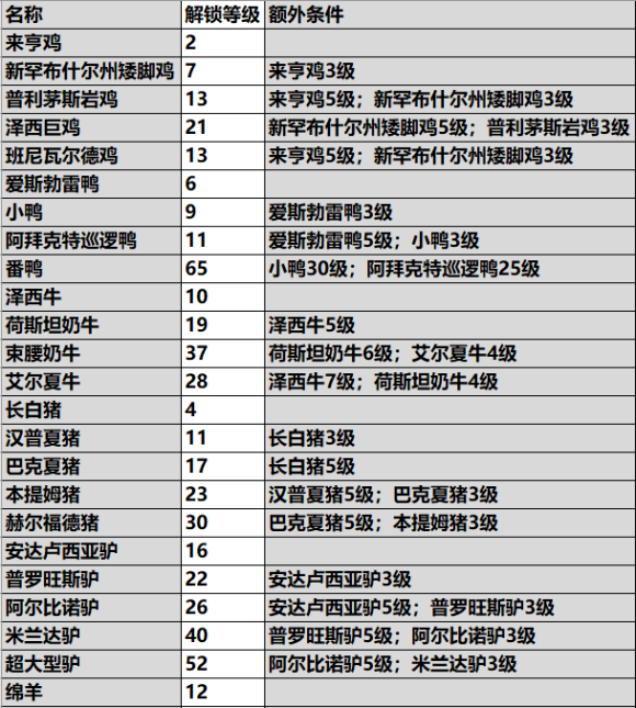 然后是动物的解锁条件