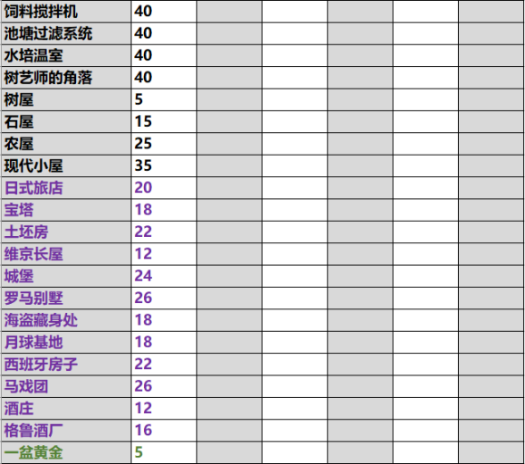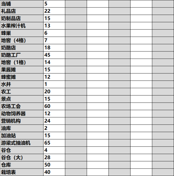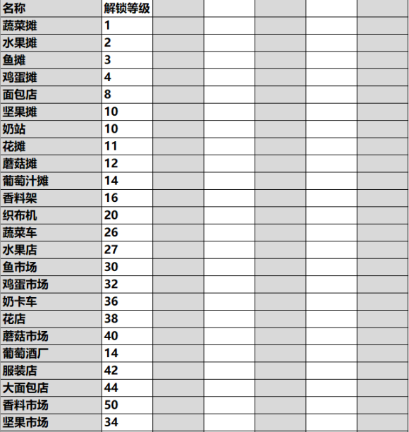 最后是功能性建筑的解锁等级