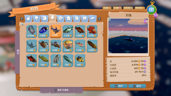 每次钓鱼,2时15分,=,这一格剑鱼在买到或者收获之后,要等待2时15分才能收获或者再次收获