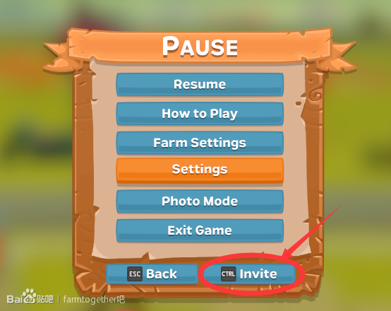 2. 在游戏内你也可以邀请好友,先进入农场,然后按键盘ESC跳出游戏暂停界面(Pause),暂停界面有“邀请(Invite)”按钮,也可以打开Steam好友列表界面,直接在好友列表里选择好友,然后鼠标右键点击选择“邀请加入”。
