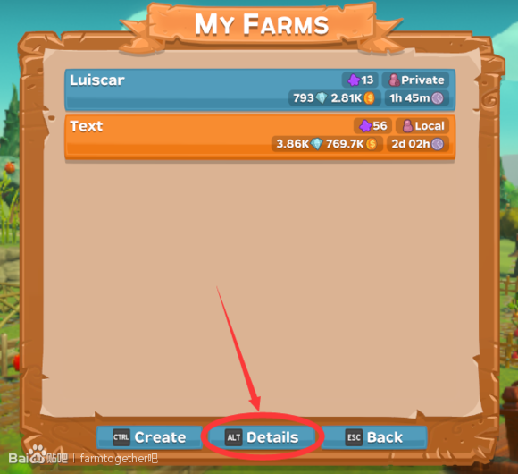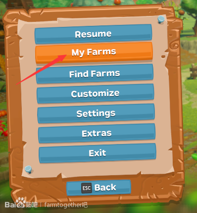 1. 进入游戏主界面按回车出现游戏主菜单后,选择“我的农场(My Farms)”,弹出农场列表。