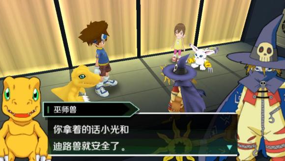巫师兽和迪路兽到达吸血魔兽的房间门口时,有一只猛鬼兽在看守着房间。巫师兽用了一个小绝招,猛鬼兽就变傻了,然后乖乖的把钥匙交了出来。(这是什么绝招?)