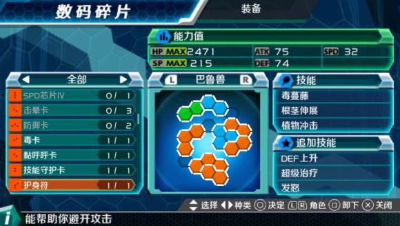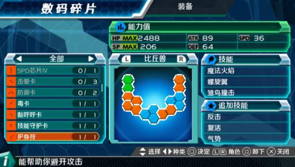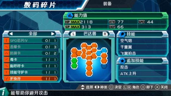 巴达兽装备:2个SP芯片II+反击+ATK上升+ATK芯片III+SPD芯片II+SPD芯片IV+2个DEF芯片II。