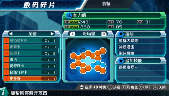 哥玛兽:大回复+ +ATK芯片III+击晕卡+ATK芯片II+防御卡+SPD芯片III+DEF芯片II。