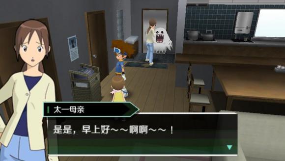 第二天早上,有人按门铃时,太一妈妈打开了门,有猛鬼兽出现在门口。