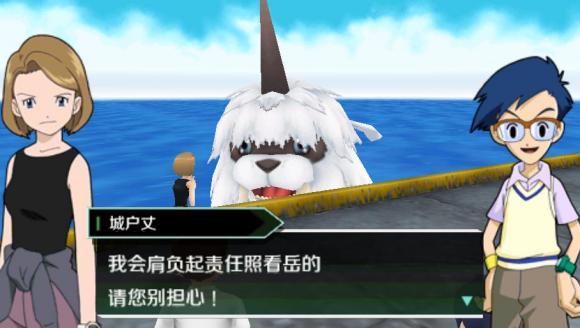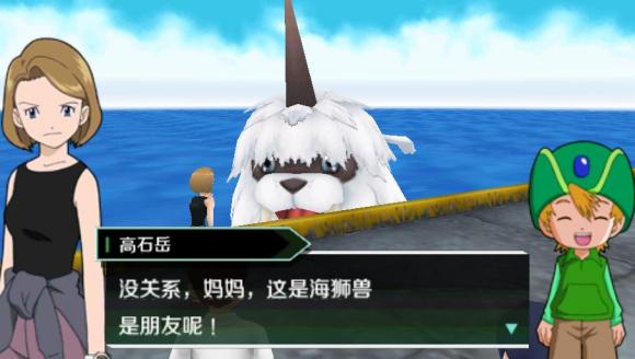 此时哥玛兽现身,打算进化为海狮兽驮着两人前往御台场。