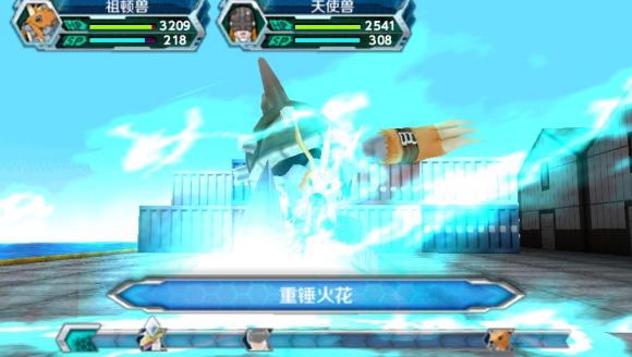 关于超海龙兽,轰雷枪和漩涡两招全是单体攻击,伤害较高。如果HP低了就用祖顿兽大回复+回复全体HP。