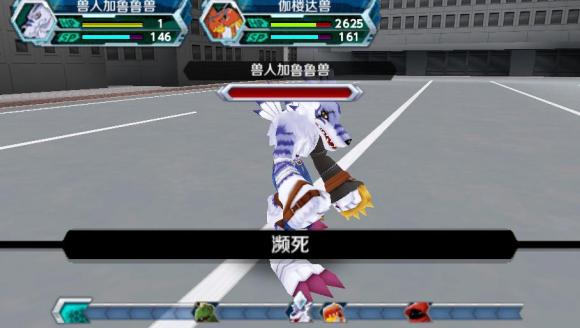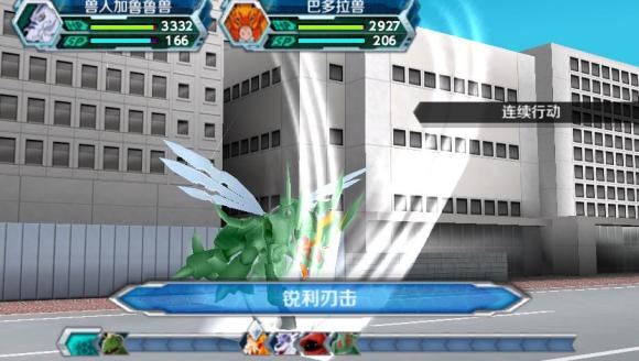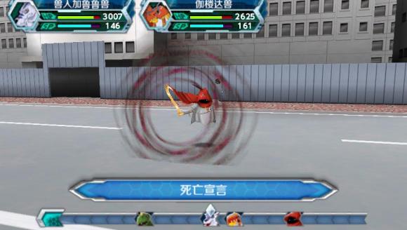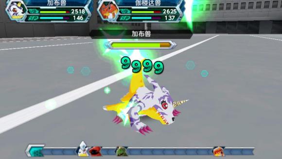 这战由于敌人是3个,死神兽是黑暗系数码宝贝,伽楼达兽影翼斩既是群攻又是神圣系招式,所以这战的主力是伽楼达兽。