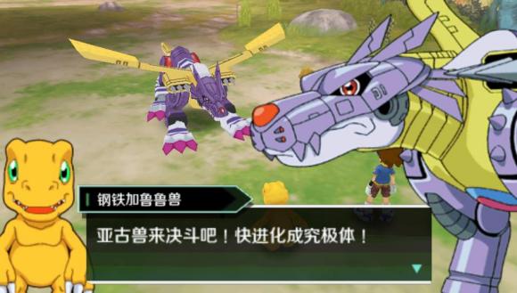 但是,钢铁加鲁鲁此时使用绝招不断挑衅亚古兽,要逼迫亚古兽进化成战斗暴龙兽和它决斗,大和同时也挑衅太一和他决斗。