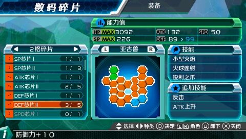 亚古兽装备:SP芯片II+SPD芯片III+SPD芯片IV+ATK提升+2个ATK芯片III+击晕卡+DEF芯片II+反击。