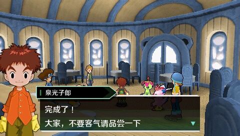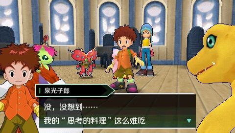 然后当我们收集完了材料之后,回到餐馆即可发生剧情。光子郎用他收集得到的材料给大家做了一顿“思考的料理”。