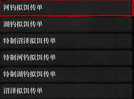 陌生人任务“天生釣手”后,拉格拉斯鱼饵店会开始出售拟饵。六种拟饵,购买后可获得对应的传单。