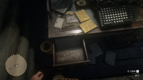 搜刮抽屉找到这两封信,搜刮完了还能找到个作弊码,桌子上有达奇想要的烟斗和蓝尼要的银怀表,屋内外有两张香烟卡和各种补给