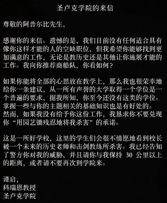 这是封基本不可能错过的信件,在游戏中搜刮的第一个莱莫恩掠夺者的成员一定会掉落这封信。