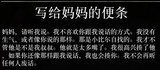 深陷悲痛的女儿的便条,意义不明。