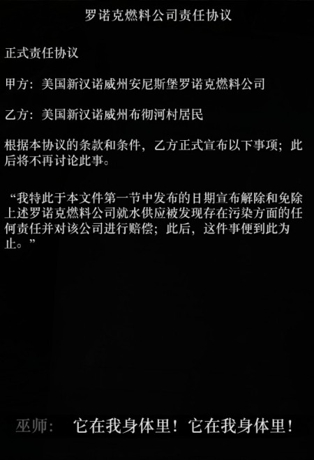 所谓的“巫师”暗中勾结罗诺克燃料公司开采极乐池矿洞,污染物污染了布彻河村的水源导致当地的村民们患了芥藓,村民由于无知被忽悠这是恶魔的诅咒,签下了燃料公司的免赔偿协议。