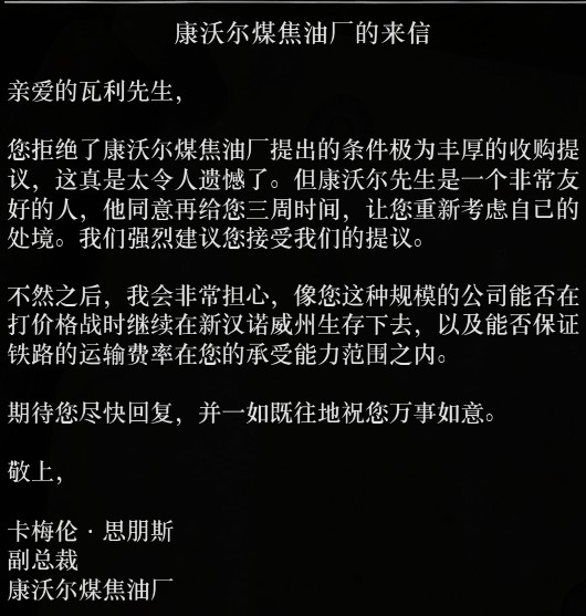 这是一封关于康沃尔试图收购油田但很明显未果的信。