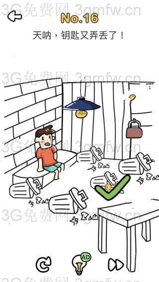 答案:移开桌子,多次点击垃圾桶,就能找到钥匙了。