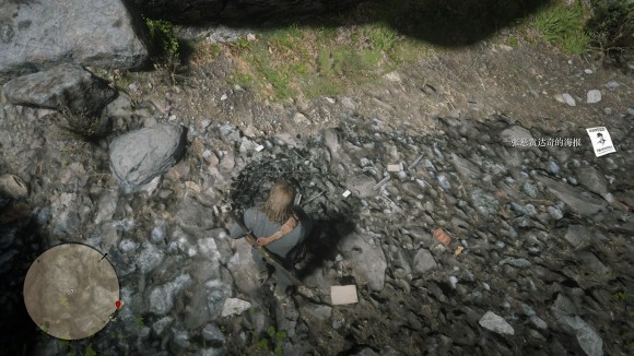 在做完“美国田园风光”,也就是和迈卡去劫马车后,迈卡就从他在外面的营地转移到了我们所在的营地。他废弃的营地可以找到三样文档:海报、两张剪报。
