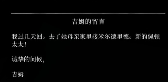 在草莓镇右上角有一座棚屋,地图上的标注是Lenora Cabin。初次前往时,会在家门口发现一份留言,一个叫吉姆的人已经前去接他的妻子了。