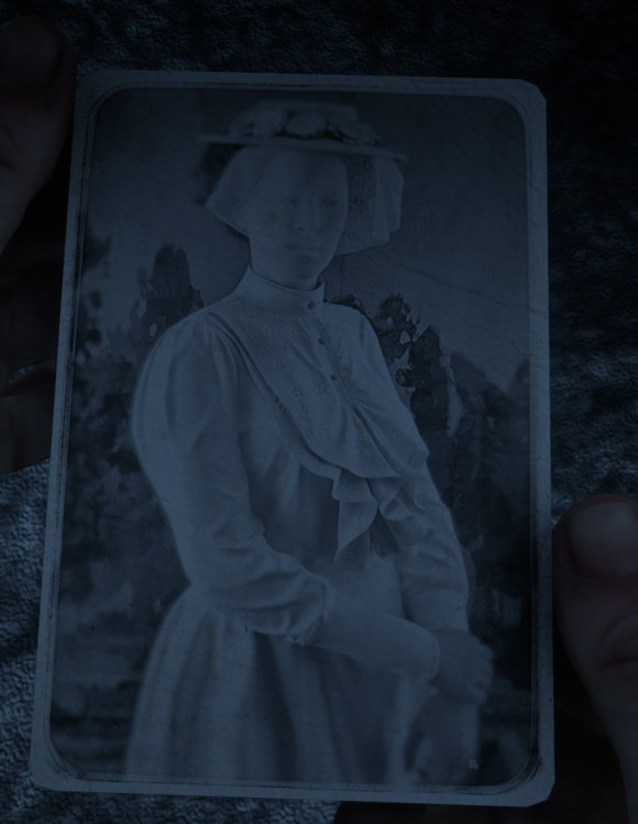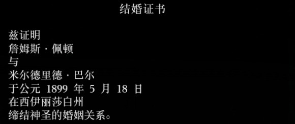 吉姆旁边的马车有一个锁箱,打开锁箱,得到吉姆和妻子米尔德里德的结婚证书。