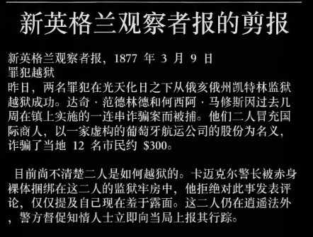 这两张剪报在任务“美国田园风光”后会出现在迈卡野外的帐篷里,伴随一张达奇的悬赏海报放在一起。
