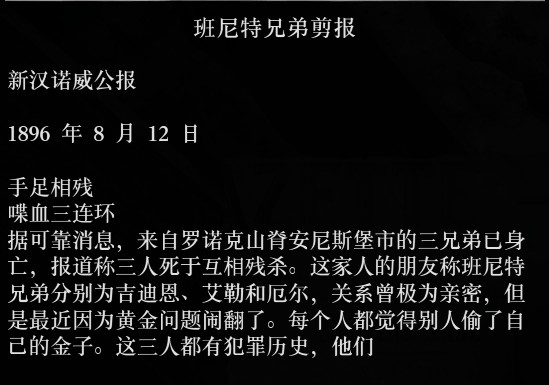 记录了安尼斯堡三兄弟为了黄金大打出手互相杀害,事件报导后引起了当地的淘金潮。