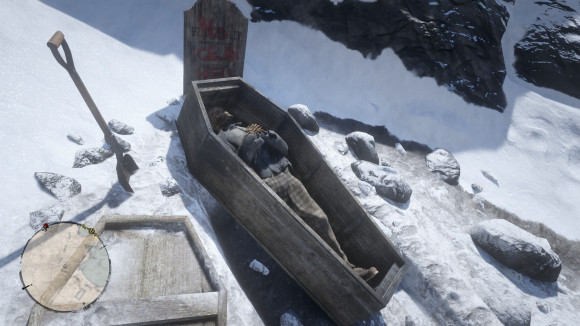 出门左转有一副棺材,里面就是这个运动员。这个地方是可以记录日记的兴趣点。墓碑上写着“地狱无冰”,尸体缺少右小腿。