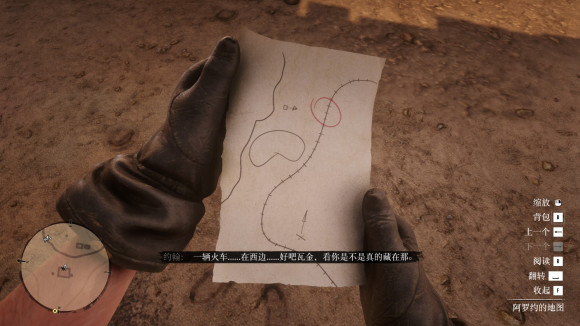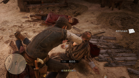 阿罗约要抢火车,任务开始需要杀死两名阿罗约的手下,威胁第三名手下以获悉阿罗约的位置。搜刮杀死的两人,可以在其中一人身上获得阿罗约的地图,是抢火车计划的简图。