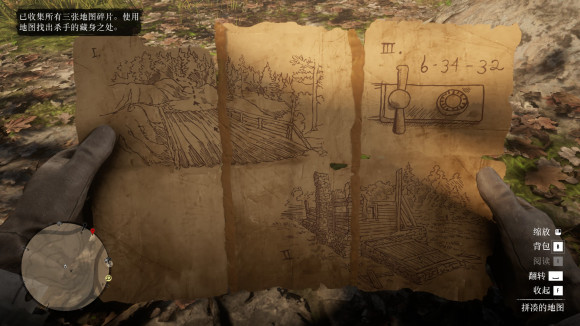 三个碎片获得后,自动获得地图“拼凑的地图”,三个碎片同时丢失。