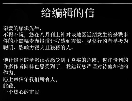 第一封,给编辑的信,一封市民对杀人狂案件表示不安的建议信。
