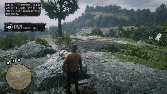 在悬崖的一棵树旁的散落的石头下可以搜得宝藏