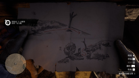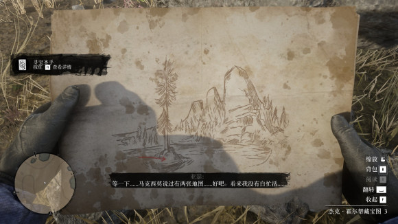 触发路线,首先来到雪山的Cairn Lake的一处棚屋拿到藏宝图1,这里也是四大枪手之一的弗拉科·赫尔南德斯的任务地点。做完他的任务后搜刮他的屋子相当顺理成章,所以这张藏宝图并不隐蔽