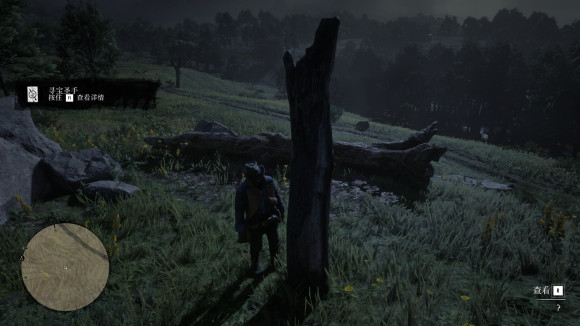 上图给的坐标很准确,来到地点,找到倒掉的和它旁边立起来的两个树干,搜查立着的树干,获得藏宝图2