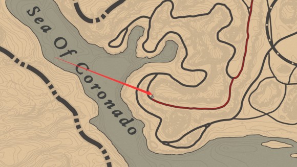 藏宝图1在地图的西南角,Coronado内海对岸,有一具倒挂在悬崖边的尸体