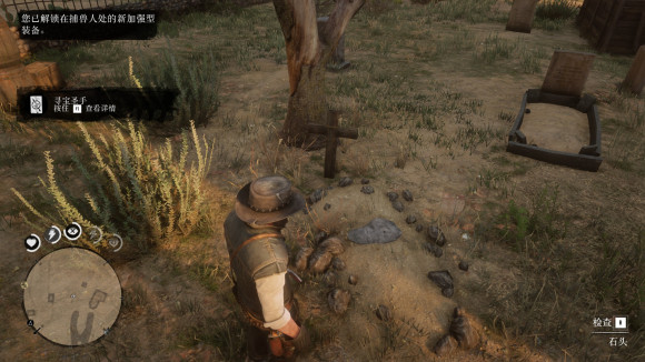 搜查十字架后的坟墓的石头,取得宝物,一块金块和乌鸦喙小饰物(使弹药搜刮量永久增加10%)