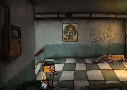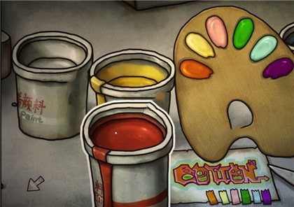5.出了包子铺下面有个楼梯,下去,把刷子给那个色弱还刷墙的憨憨,帮他调色(夏姬八乱调就行,你调出来啥色都不会按照图纸上画,别忘了这家伙是色弱,忽悠就行了,你调对了他都给你画错)