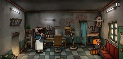 9.继续往楼梯上走,把理发店门口的头发拿走,进门,把明信片给理发店老板,他给你个金(个屁)剪刀,然后那个女孩去剪头发,把沙发上的打火机拿上