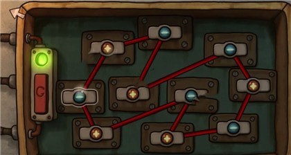 再冲过牙医店到了楼梯间,墙上有个小解密,也很简单,正负极相连,每个电极都要连两条电线,