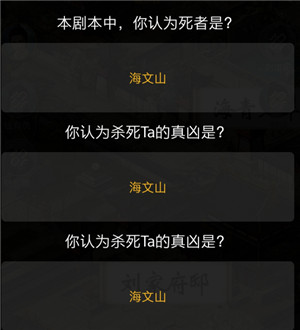 以上为莫须有的死者所有故事真相。(PS:本剧本的高玩优选角色中,海文山与刘虞氏剧本自带人物攻略,陆仁贾自带人物攻略。)
