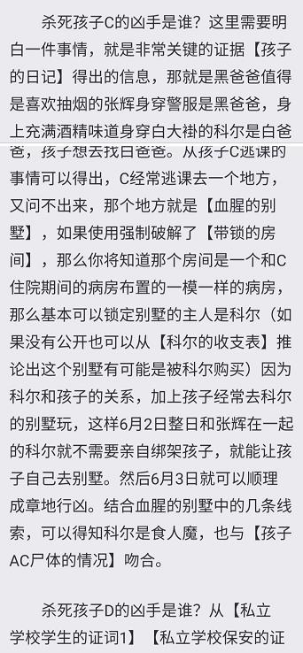 10月份科尔人肉瘾发作,他和张辉 的孩子约定可以周末去他别墅里玩,前提 是不告诉任何人。久而久之,孩子对别墅 的位置非常熟悉。